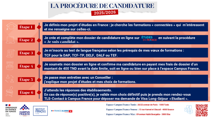 Campus France Tunisie vous explique la procédure à suivre pour candidater aux écoles et universités françaises à travers la plateforme "Etudes en France".