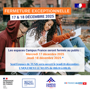30 janvier 2026 - matin : Fermeture exceptionnelle Campus France Sousse